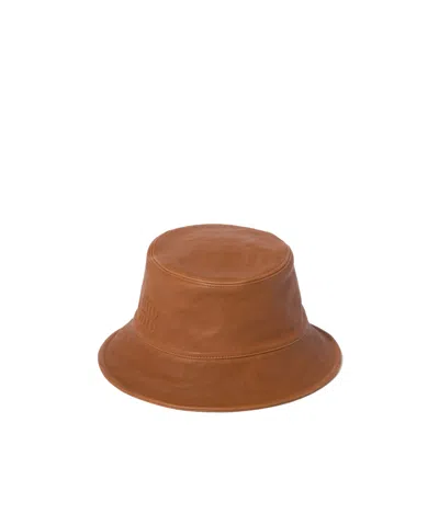 Miu Miu Leather Bucket Hat In Brown | ModeSens