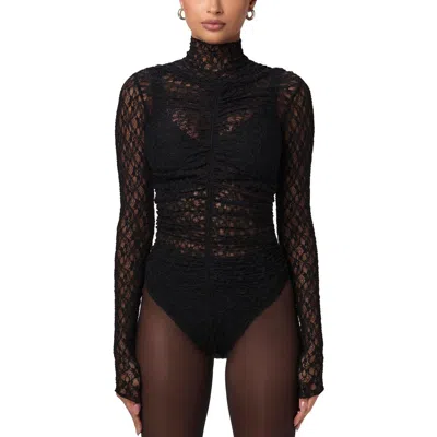 Naked Wardrobe Long Sleeve Lace Bodysuit In Black | ModeSens
