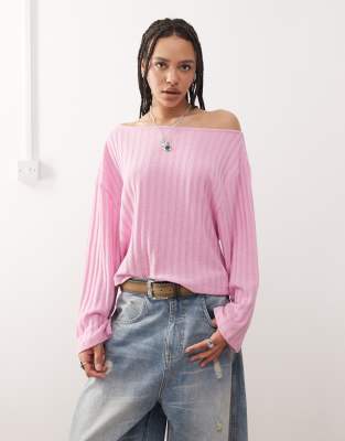 Reclaimed Vintage slouchy off shoulder jumper in pink | ASOS