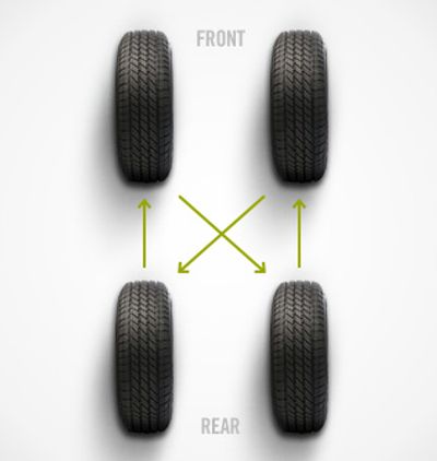 • Front-to-Rear (for non-directional tires): Front tires move straight to the rear, and rear tires move straight to the front.